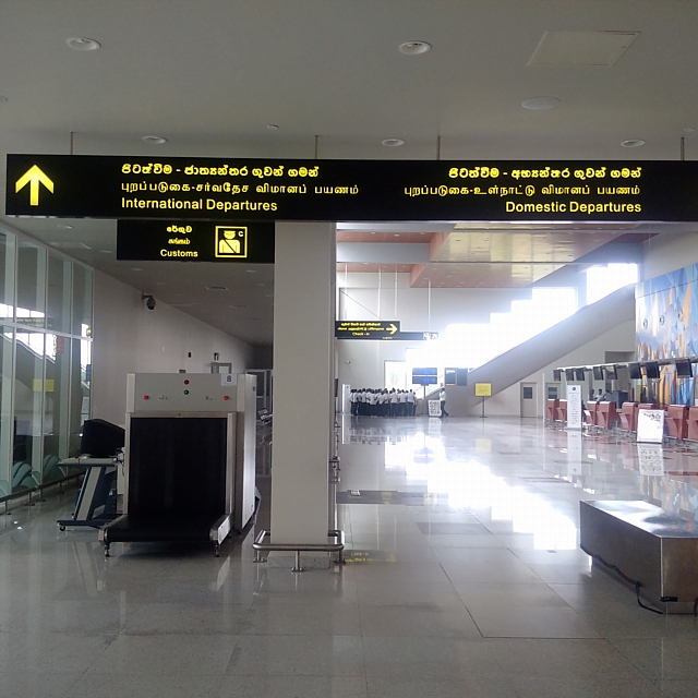 Empty check-in and baggage scan counter at Mattala Rajapaksa International Airport (MRIA), Hambantota